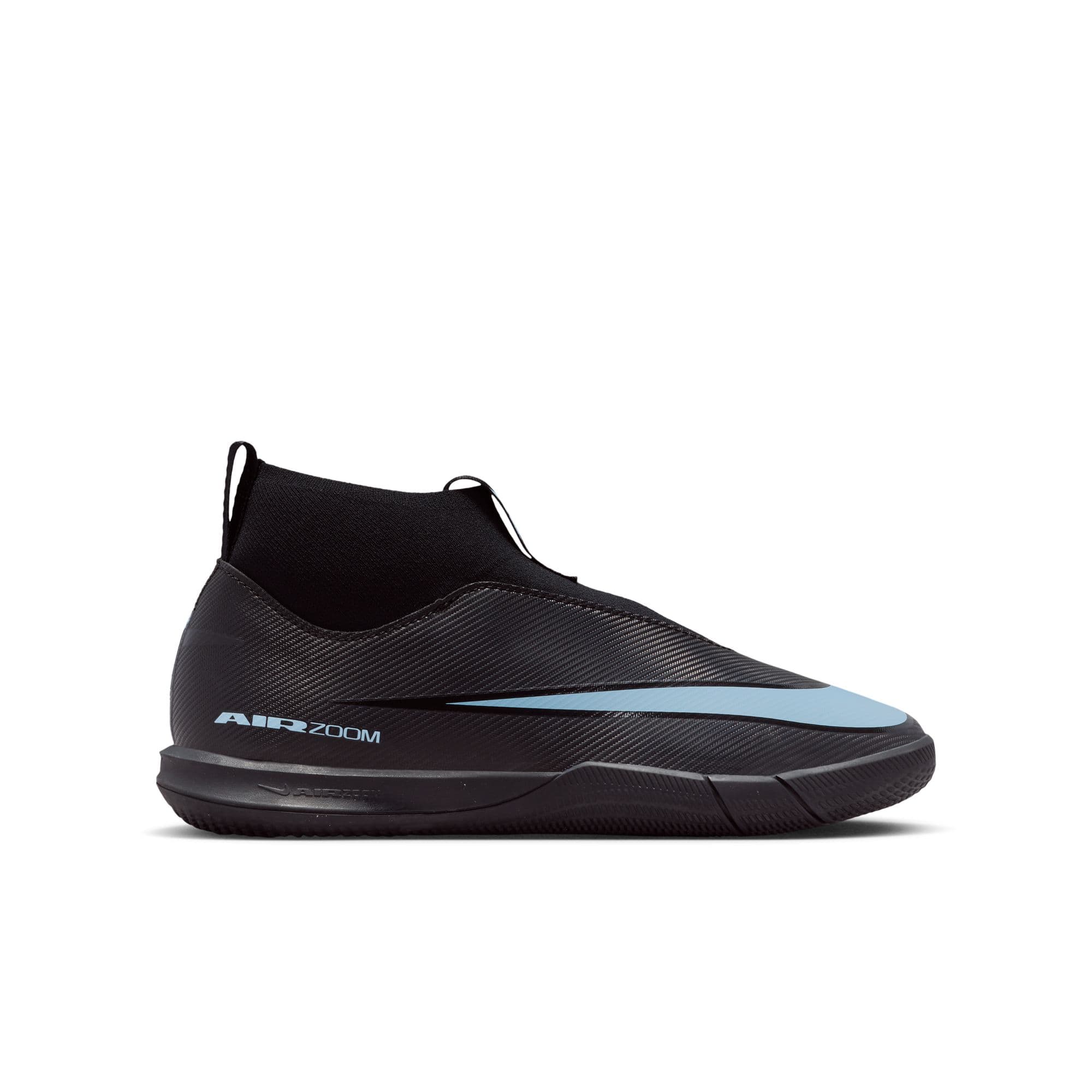 Fly past defenders in Nike Jr. Mercurial Superfly 10 IC. Kids’ indoor soccer shoes with Air Zoom, NikeSkin upper, and laceless fit for speed and control.